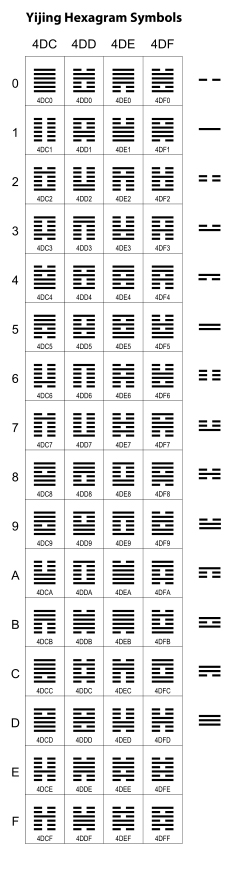统一码(Unicode)是国际组织制定的可以容纳世界上所有文字和符号的字符编码方案,也是计算机科学领域里的一项业界标准,包括字符集、编码方案等。统一码(Unicode)也包含:《易经》六十四卦符号和阴爻、阳爻、四象、八卦符号,以及《太玄经》符号。